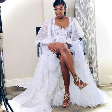 Beautiful One-Piece Corset robe made with premium tulle and lace fabric,perfect for wedding morning bridal suite shots.
